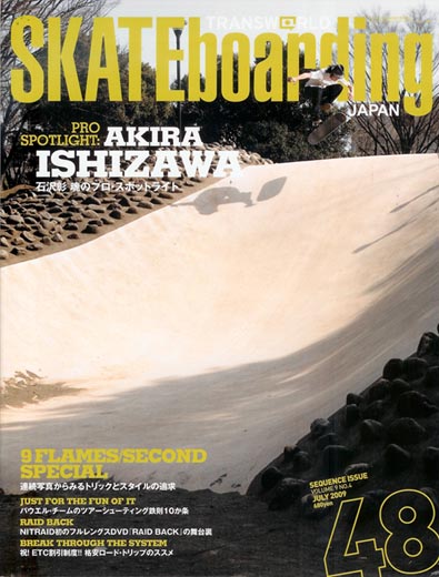 昨日の続きになるが、sbとおよそ同時期に発売された“TRANSWORLD SKATEBOARDING(JAPAN)”。 こちらはアメリカが本家で昔はアメリカ版の翻訳なども多くあったようだが、最近は国内のSK8事情を多く取り上げている。 表紙を見て分かるように今号のメインは“石沢彰”氏の特集がメインになっている。 見た目も若く見える彼は実は俺より2〜3歳ほど年上で40歳手前。 初めて石沢君を見たのは十数年前になる。 当時の一般論ではすでに最先端の技をやるような年齢ではない。 だが、彼は最先端のトリックをガンガン決めている上に見た目も若い為、確実に俺よりも年下だと思い込んでいたのだが、その後年齢を聞いてビックリ。 そこから十数年経った今も彼は何も変わらずSK8しモチベーションを維持し続けている。 ある意味、自分自身と何かしら近い部分があるのだろうという推測をもとに、そんな彼にずっと興味があったので今回のインタビューは嬉しい限り。 昨日と同じくトリック云々ではなく、そんな彼の“人”としての部分に興味がある人は是非チェックしてほしい一冊。
